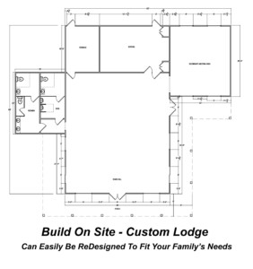 This is our Bobcat Cabin Kit. It measures 24 x 44 (dimensions and layout can be customized to fit your needs). It includes all interior walls, cabinets, and bath vanities. The customer is responsible for the foundation, assembly of the pre-cut kit, and all electrical, plumbing, and HVAC. The Bobcat log cabin is a great model from getaway cabins to campgrounds, guest houses, and even offices! All of our cabins are customizable so just give us a call we can design your dream cabin!